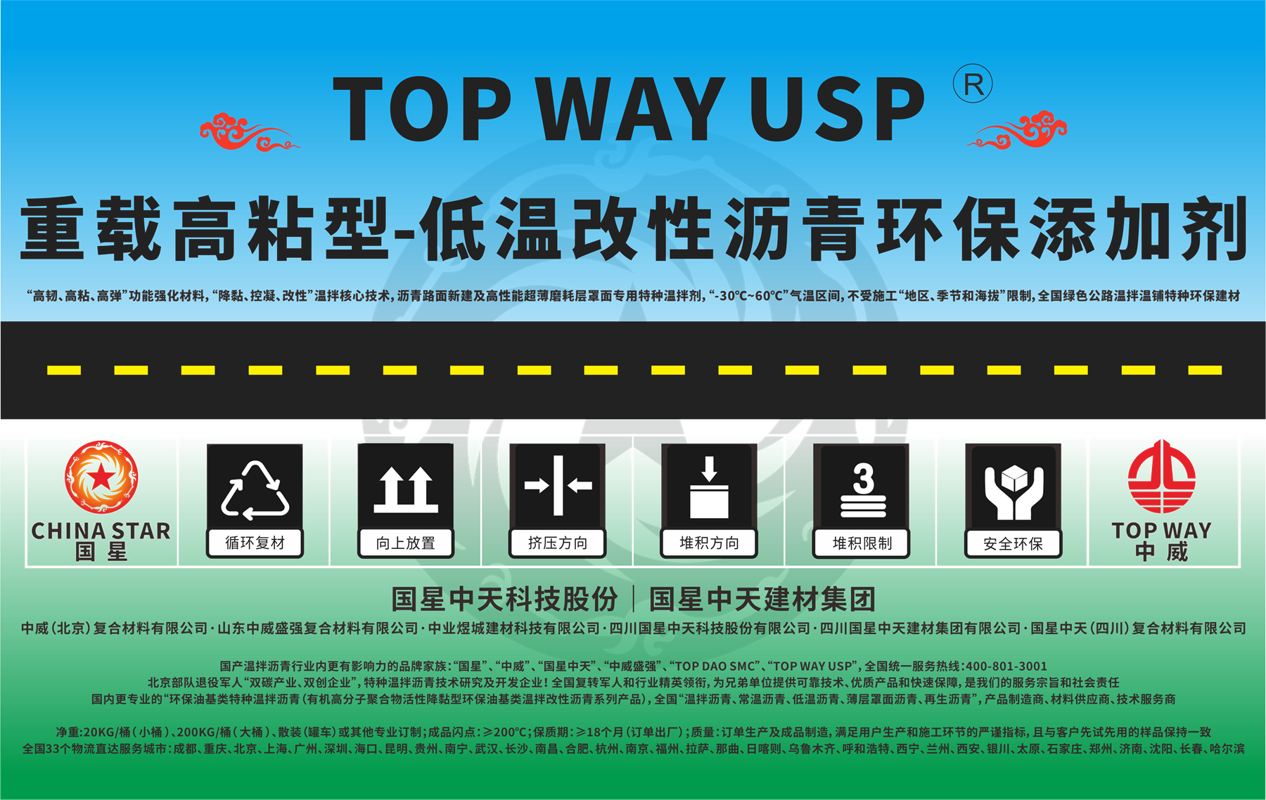 国星中天集团注册商标:“TOP DAO SMC” 、“TOP WAY USP”、“国星中天”。国星中天旗下“低温改性沥青”(特种温拌改性沥青)系列产品,全球重载型道路交通专用特种绿色路面建养材料。中国低温改性沥青、有机降黏型(油基类)特种温拌沥青行业,注册商标、知名品牌,拥抱“双碳政策”!服务“低碳交通!打造中国常温沥青、低温沥青、温拌沥青、超薄沥青、再生沥青等“绿色低碳沥青”的基础研究、产品开发、生产制造、物流配送和技术服务龙头企业!